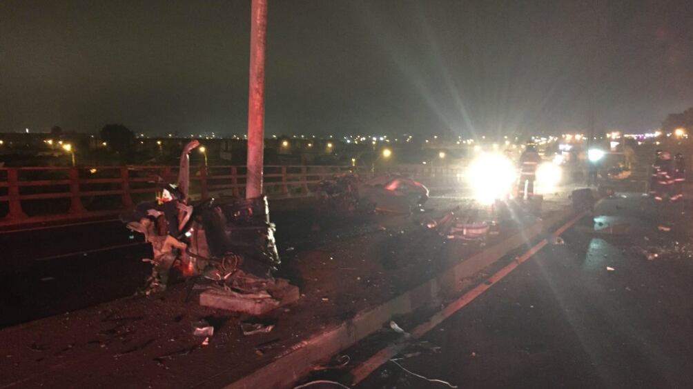 Y justo en el paso nivel sobre Hualpén, el vehículo impactó de lleno a un poste de la luz, partiéndose el automóvil en dos y saliendo eyectado el motor. Mientras que las dos personas que iban en el interior de la máquina fallecieron en el lugar.