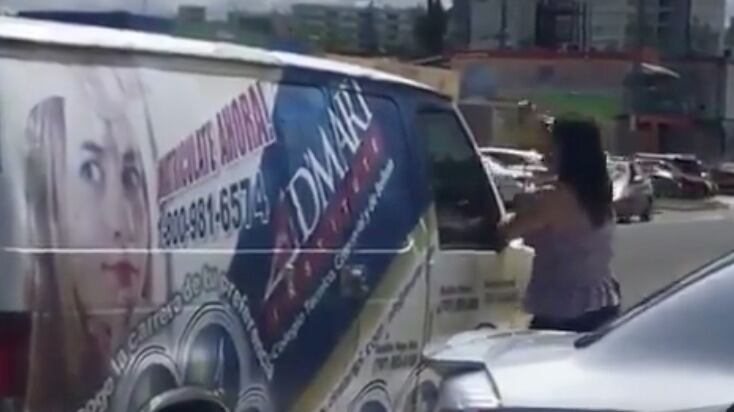 Un video que muestra a una mujer golpeando una guagua, donde aparentemente se encuentra su pareja, se ha hecho viral en las redes sociales en las últimas horas.