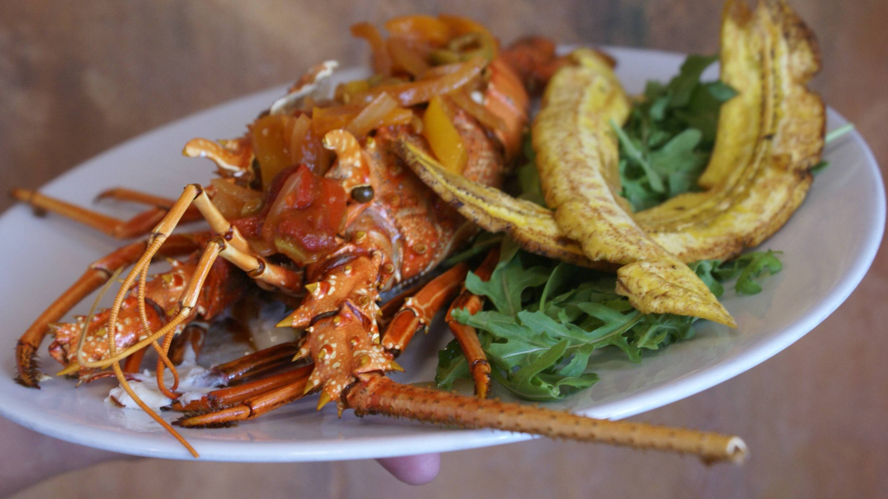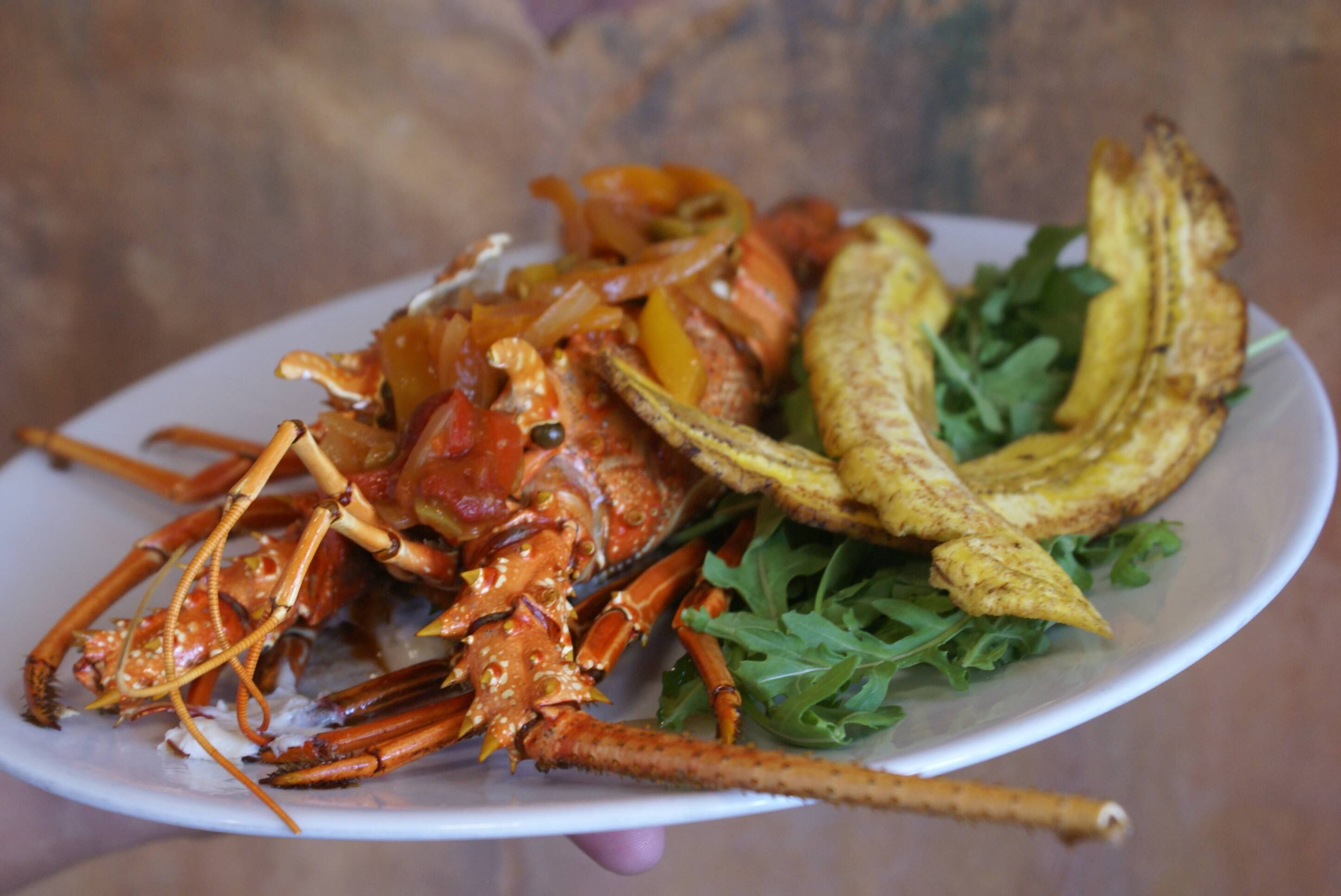 Entre las especialidades del chef se recomienda la langosta en salsa criolla, el dorado fresco envuelto en hoja de plátano, servido con papitas ahumadas, y el tierno salmón a la toscana.