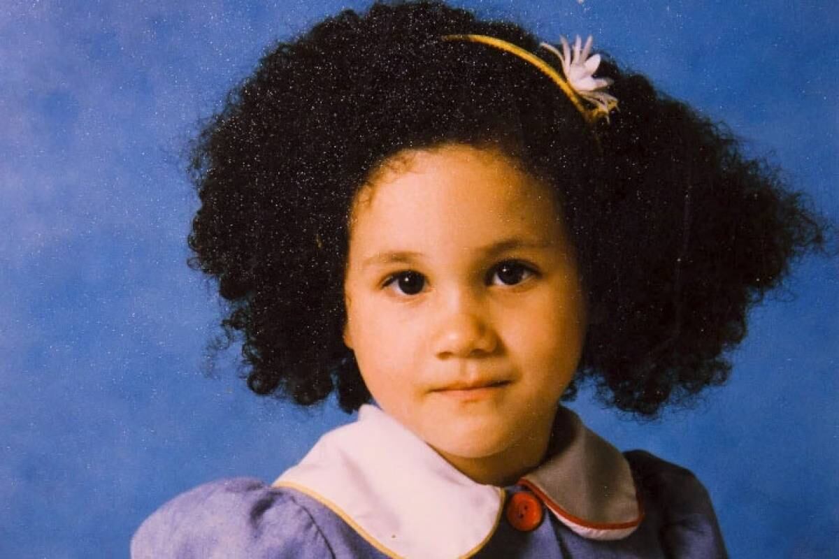 De niña, Meghan Markle lucía un peinado afro, acorde con sus raíces afroamericanas. Hija de madre negra y padre blanco, Meghan nunca ha ocultado el orgullo que siente por ser de raza mixta pero de adulta optó por un look de cabello liso.