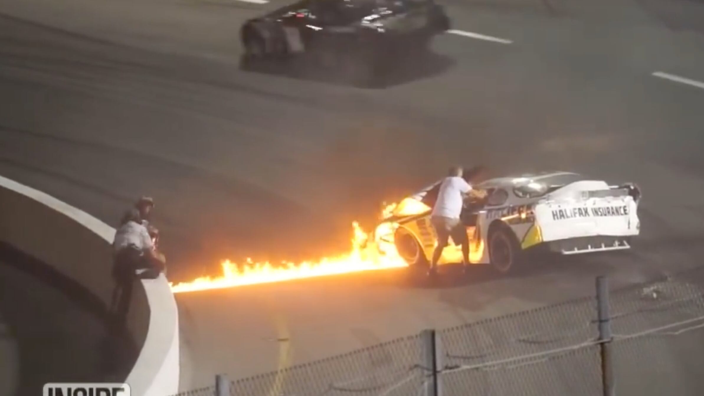 Mike Jones vivió momentos muy dramáticos cuando el vehículo que piloteaba se incendió tras tener un accidente, afortunadamente para él su padre actuó rápido y lo sacó antes de que las llamas lo alcanzaran.