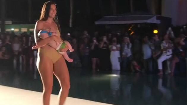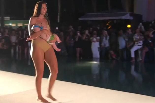 La modelo Mara Martin sorprendió a los asistentes del Miami Swim Week cuando salió a la pasarela con su bebé de cinco meses mientras lo amamantaba.