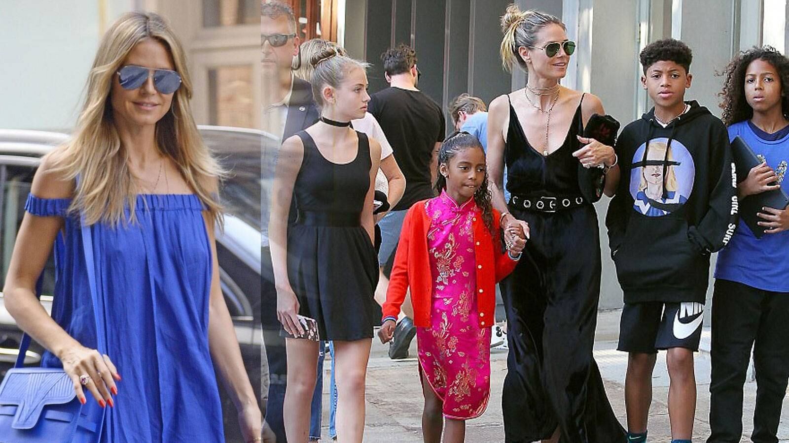 Esta semana fue vista por las calles de Nueva York la sensacional Heidi Klum viste, la tarde del viernes 20 de julio deslumbró con un vestido azul holgado en el vecindario de Soho. Recientemente la modelo de 45 años y el juez del programa de competencias de talento ’America’s Got Talent’ reveló su contundente decisión y postura acerca de lo que ella diría en respuesta a las mamás que se sienten avergonzadas por las diferentes críticas culturales a la revista Elle: