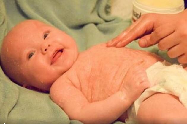 Una bebé llamada Amelia padece una extraña enfermedad que hace que su piel se vea como la de una serpiente.