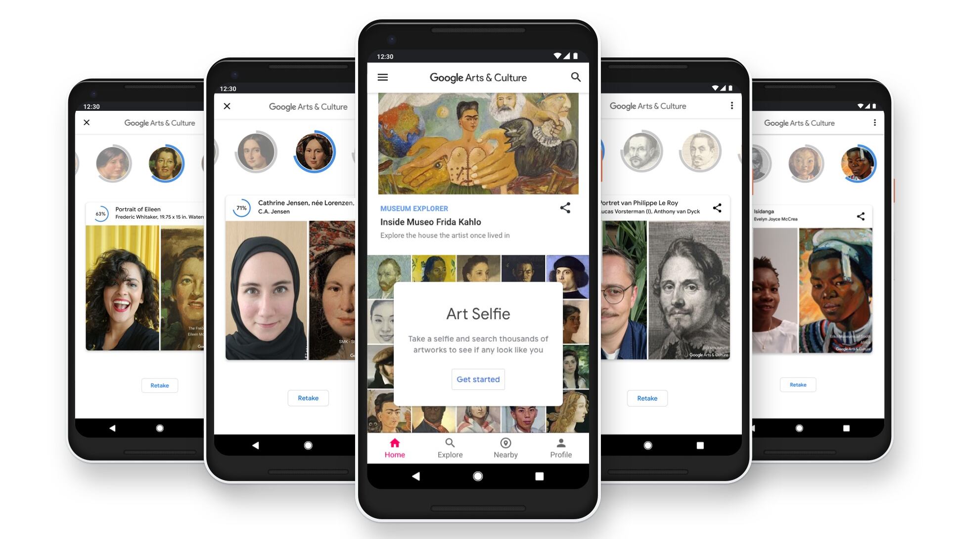 “Art Selfie” funciona con tecnología de visión por computadora basada en el aprendizaje automático. Cuando te tomas una selfie, tu foto se compara con las caras de las obras de arte que han proporcionado los museos asociados. Después de un breve momento, verás los resultados junto con un porcentaje para estimar la similitud visual de cada coincidencia y tu cara. Tu selfie se convierte en una puerta de acceso al arte: toca el retrato parecido a ti para descubrir más información sobre él o sobre algún artista del que quizás nunca habías oído hablar.
