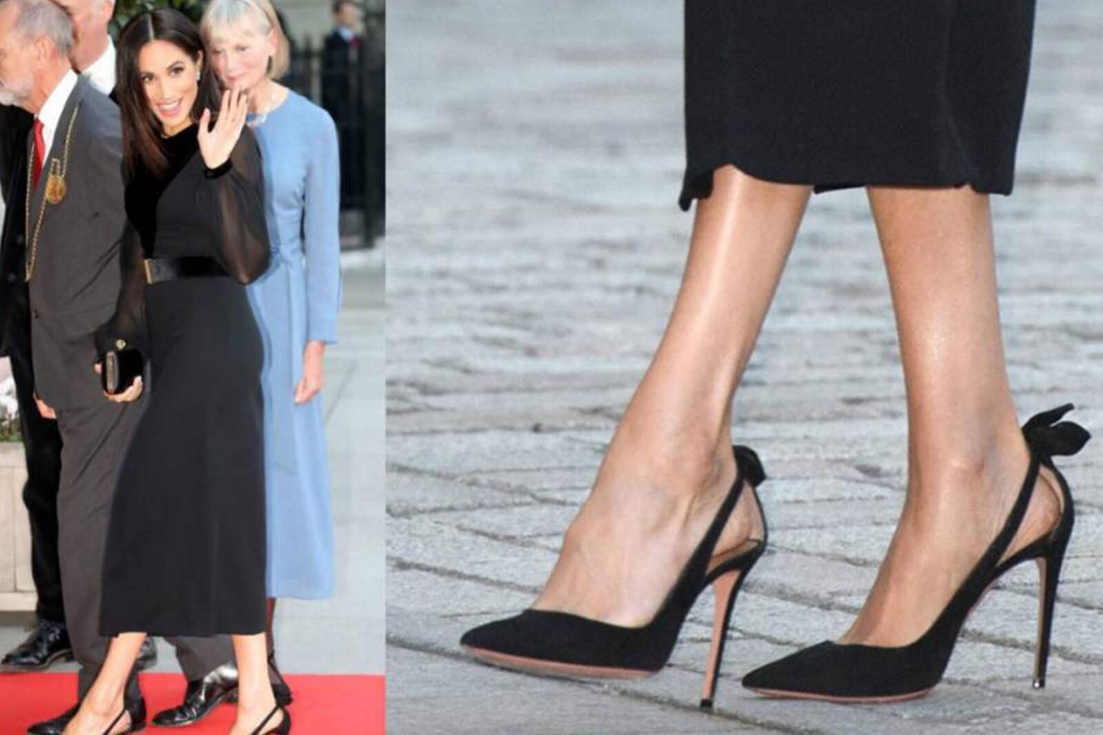 Se trata de sus pies. Y es que la duquesa de Sussex usó unos tacones con un escote en la parte media, dejando a la vista parte de sus talones.
