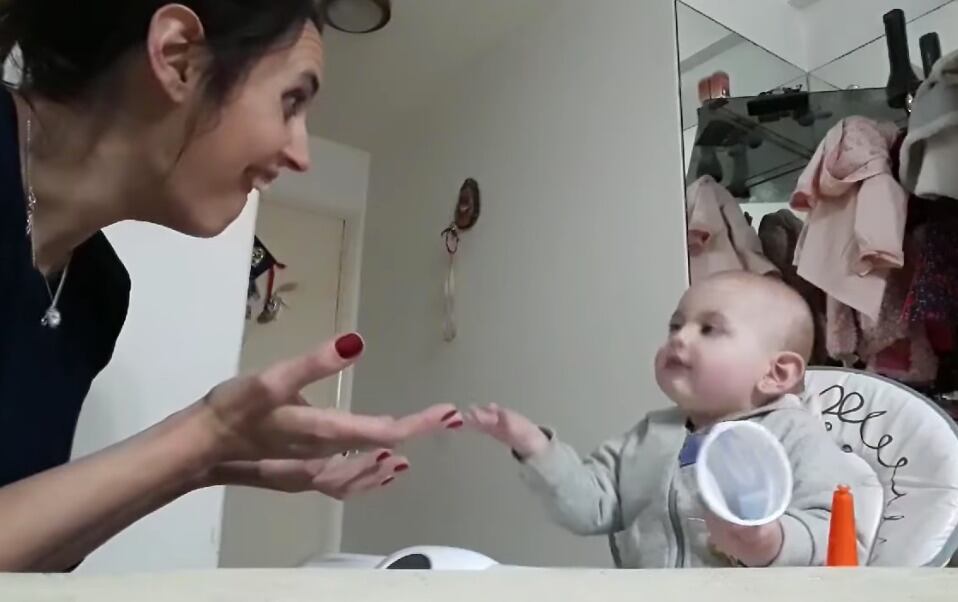 Las risas brotan por montones además cuando la niña nota que está siendo grabada, y mientras “pelea” con su madre se detiene a posar para la cámara.