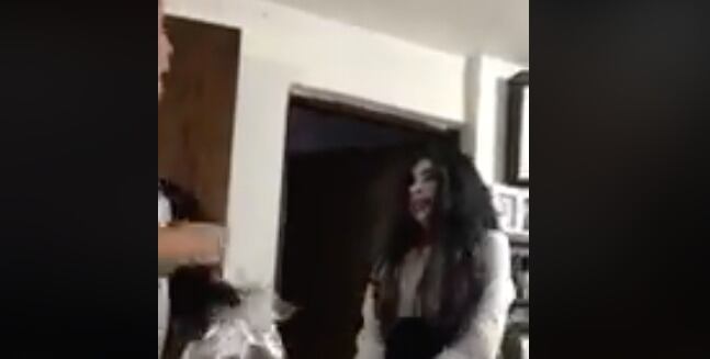 Madre boricua se lleva tremendo susto en Halloween (video)