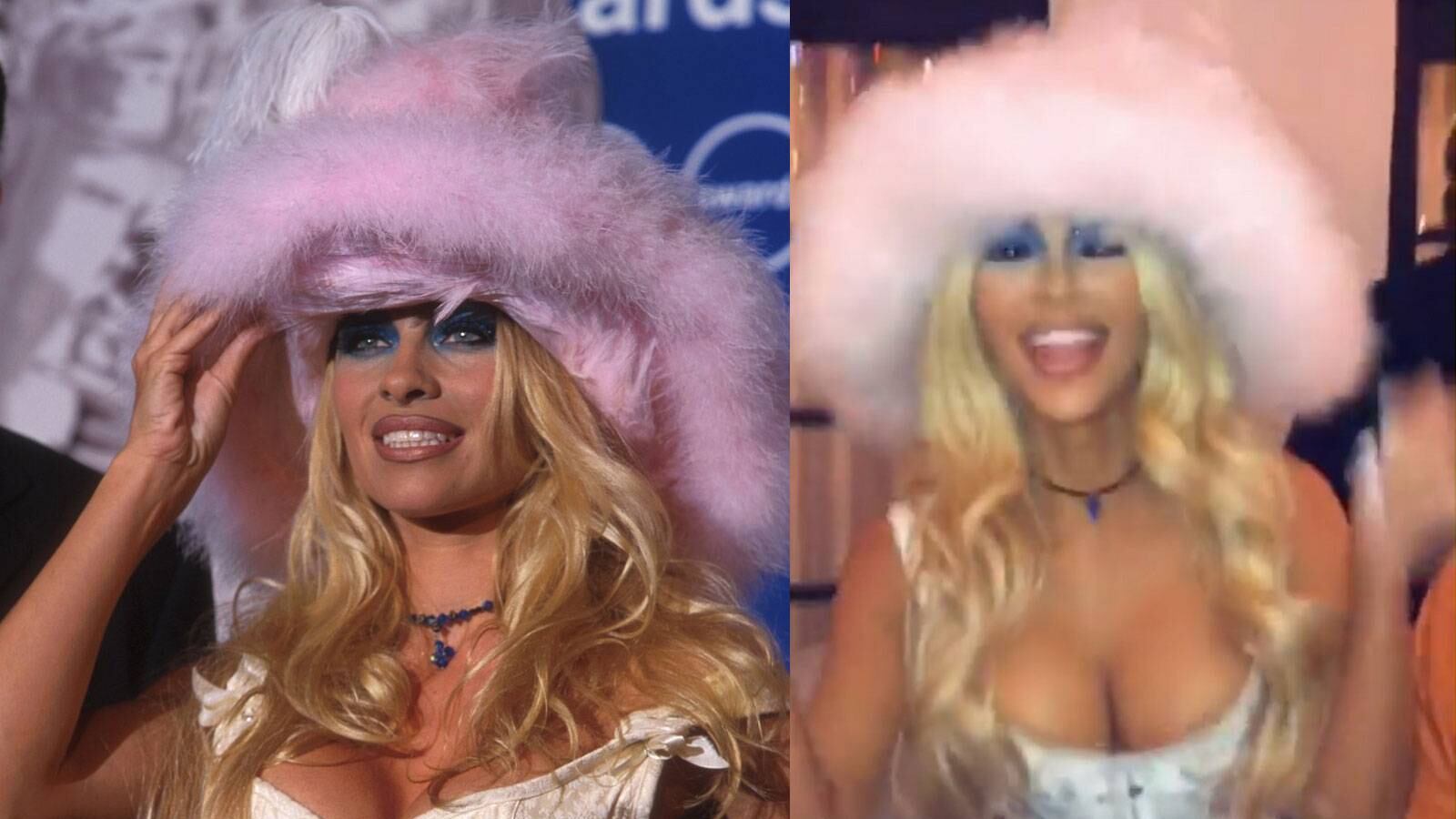 En el caso de Kim, su más reciente atuendo para Halloween, estuvo inspirado en el look que lució la icónica Pamela Anderson, cuando asistió a los MTV Video Music Awards de 1999. Un look totalmente retro para la época con una sombrero de piel así como un corsé blanco y pantalones metalizados con apliques. Kim decidió imitar este look por completo y logro copiarlo con exactitud, al punto de quedar exactamente igual a Anderson.