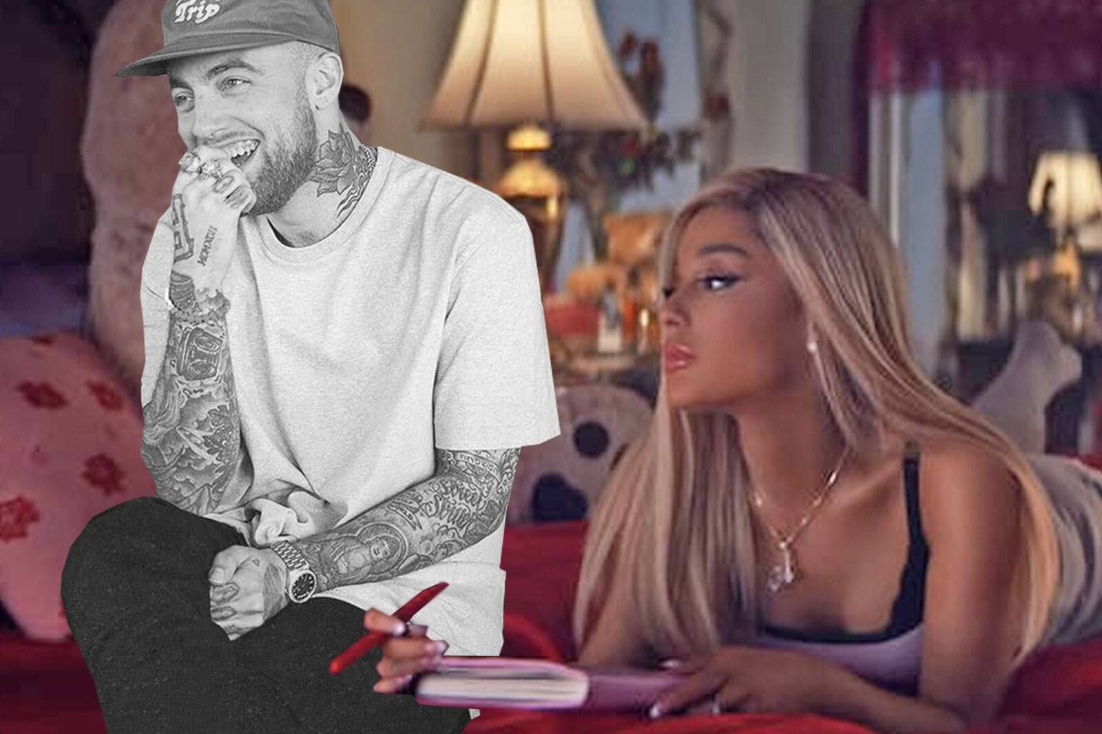 Ariana va nombrando a cada uno de ellos, como Big Sean o Pete Davidson, pero cuando llega a la parte de Mac Miller, él no está en el libro. Un momento muy doloroso sin duda de grabar. En la escena Ariana mira a la cama vacía, como si Mac estuviera sentado allí y luego mira al cielo, en señal que de que lo recuerda como un ángel, citando literalmente lo que dice la canción.