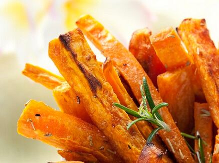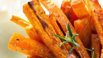 Corta la batata en forma de papas fritas y sécalas, antes de llevar a tu air fryer.
