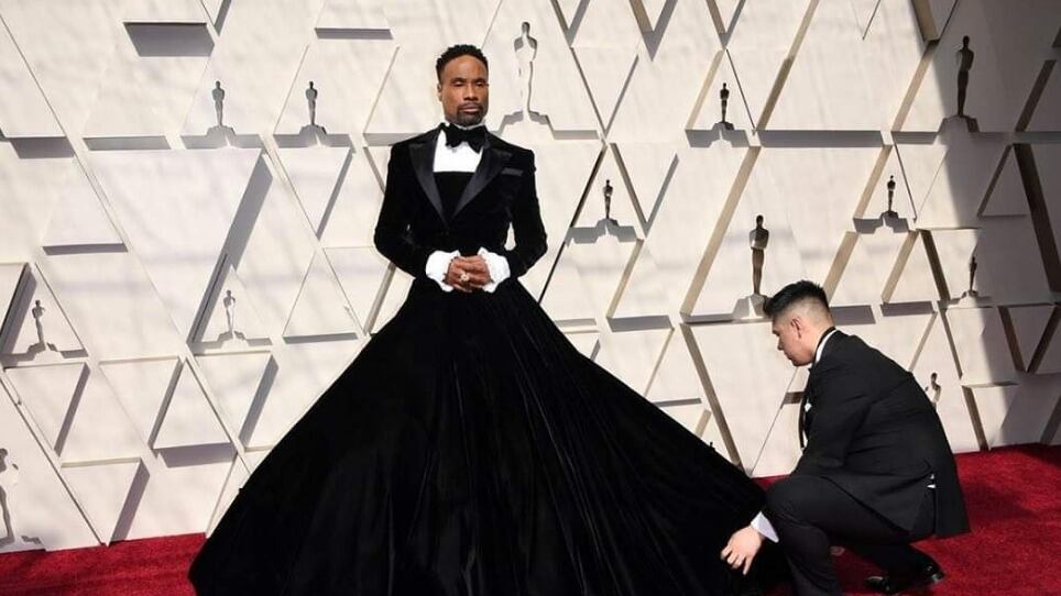 Billy Porte, quien interpreta Pray Tell en la serie dramática estadounidense ‘Pose’ fue la revelación en la alfombra roja de los Oscar 2019, en las fotos se puede ver que el actor lució un traje aterciopelado negro con falda de gran volumen, camisa blanca con puños plisados y con una vistosa pajarita, que ha dejado a muchos con la boca abierta.