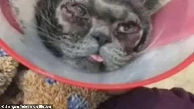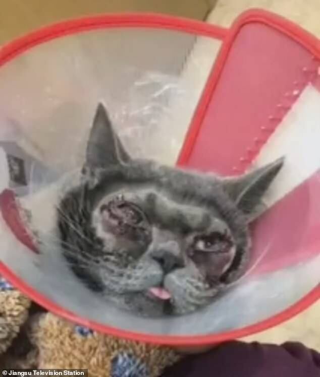 El hecho fue dado a conocer por el canal Jiangsu Television, en donde mostraron al felino con el rostro enrojecido e hinchado producto de la cirugía.