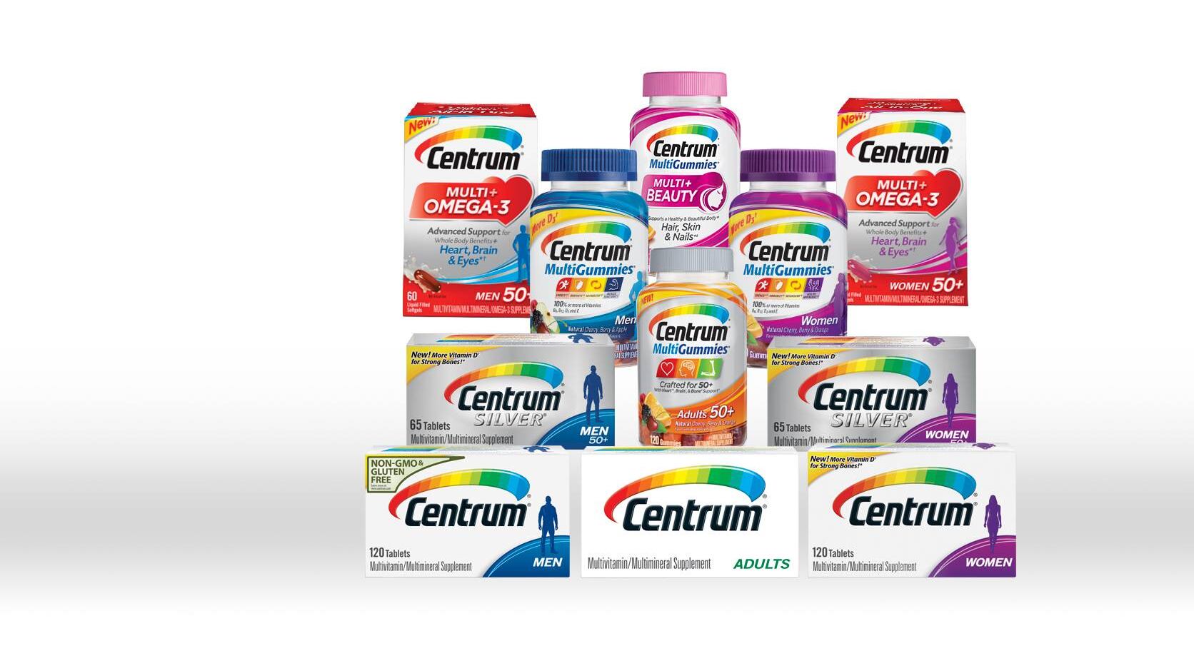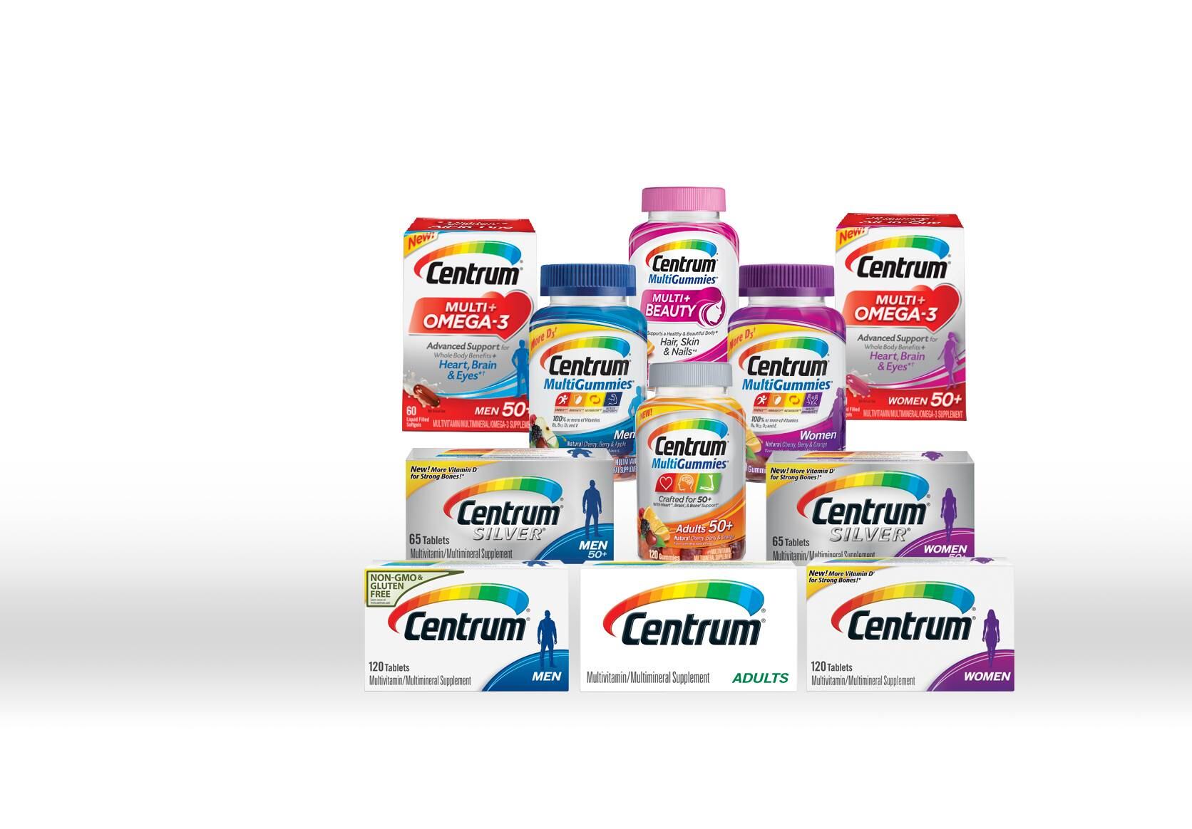 Centrum cuenta con una extensa línea de productos con fórmulas específicamente desarrolladas para atender las diferentes necesidades de la población de acuerdo a su género y edad. Desde las tradicionales Centrum® para adultos, Centrum Men y Centrum Women para hombres y mujeres menores de 50 años que ayudan a apoyar la función normal del sistema inmune. La fórmula para mujer también ayuda al metabolismo, a una apariencia saludable y huesos fuertes. En cuanto a Centrum Silver Adults 50+ para la población mayor, esta fórmula ayuda a apoyar la fortaleza de los huesos y la salud de los músculos.