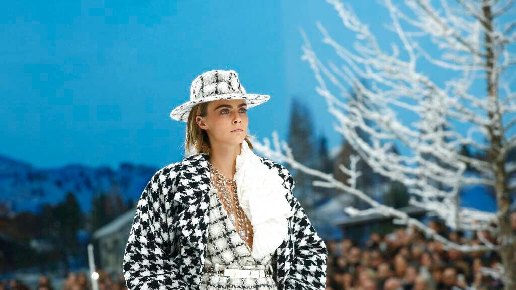 El desfile usó la temática alpina como una piedra angular para producir una colección invernal clásica de Chanel.