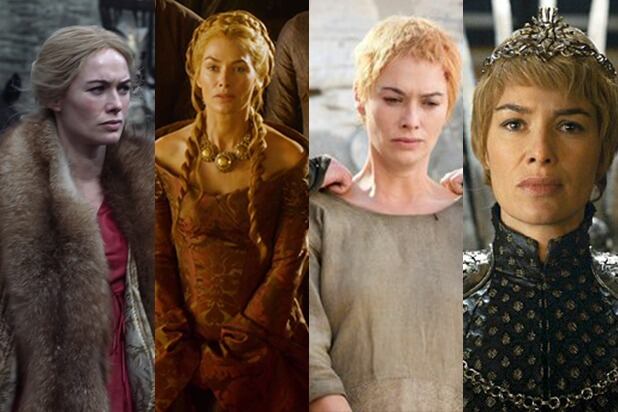 Comienza con su posición de reina de los Siete Reinos con peinados elaborados, así como con vestidos en amarillo, rosado y rojo, marcando distancia con los demás personajes. A veces, parece más discreta y sobrepasada por Robert en siluetas como kimonos y colores pastel. Pero, cuando él muere, comienza a tener vestidos mucho más statement en colores como verde y peinados igual de elaborados. También se caracteriza por usar los símbolos de su casa, Lannister, de la temporada 2 hasta la 5 en vestidos muy elaborados en rojos y oro, collares de león y brocados con el mismo símbolo, así como capas en tafetán y terciopelo para mostrar su pináculo de poder.