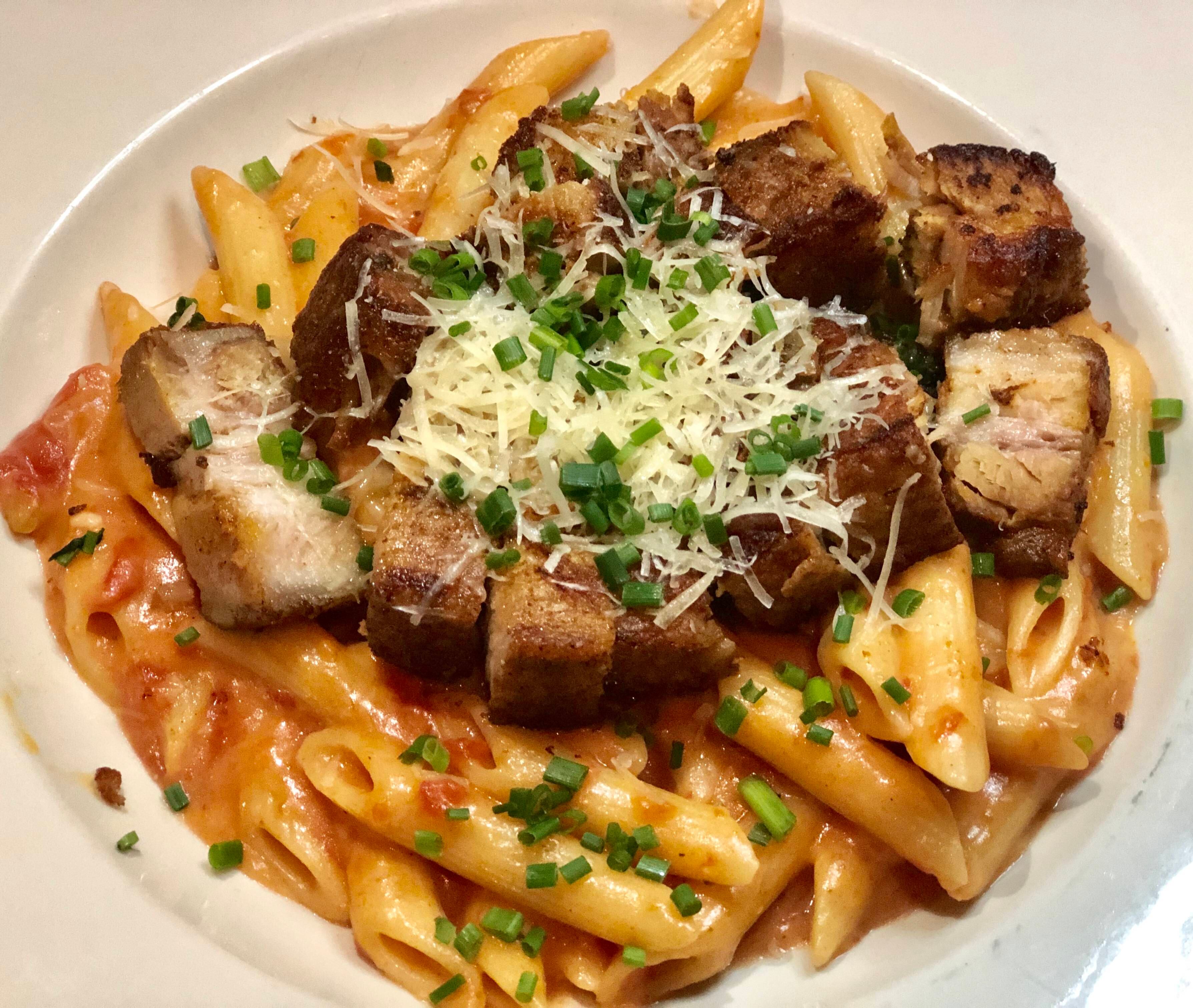 Como plato principal se sugiere el Chanchito (pork belly) a la vodka servido con pasta penne; los camarones al ajillo con pasta linguini; costillas al whisky con papas salteadas; o los escalopines al limón y alcaparras acompañados con papas salteadas.