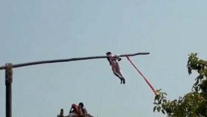 Docenas de hombres perforaron su espalda con ganchos y fueron colgados en carruseles y grúas durante el festival Charak Puja (también conocido como Nil Puja) para honrar a Shiva.