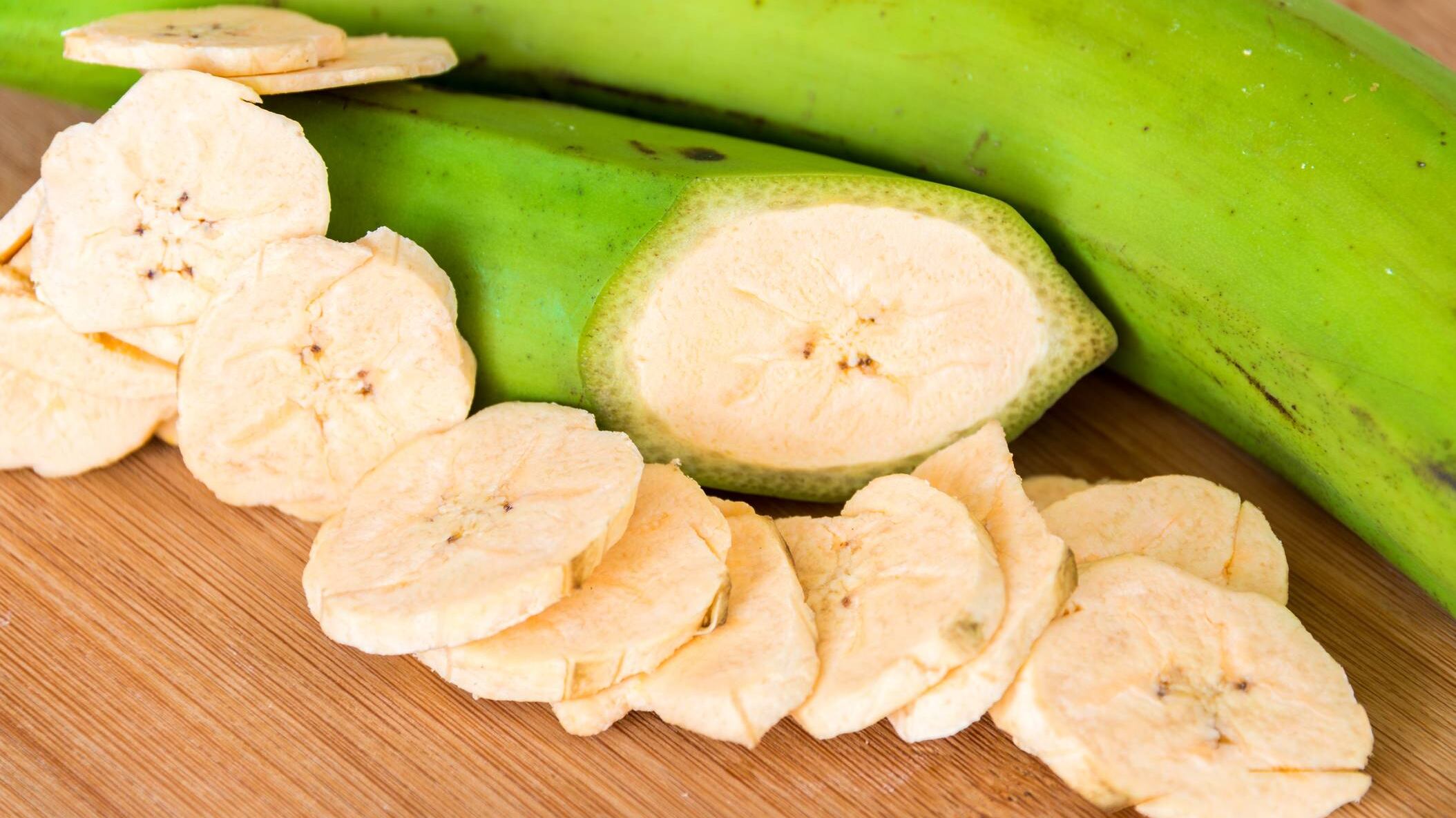 Lavar y picar los plátanos. Ya listos, tomar un rallador de alimentos y hacer tiras con ellos. Aplastar y darles forma plana, a la vez que se le añade sal a gusto.