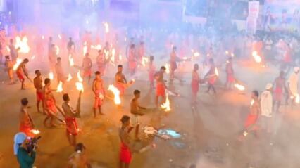 Los devotos se reunieron en el templo de Durga para celebrar el Agni Keli, también conocido como la “lucha de fuego”. Esta tradición se lleva a cabo durante un período de ocho días. Video: Ruptly.