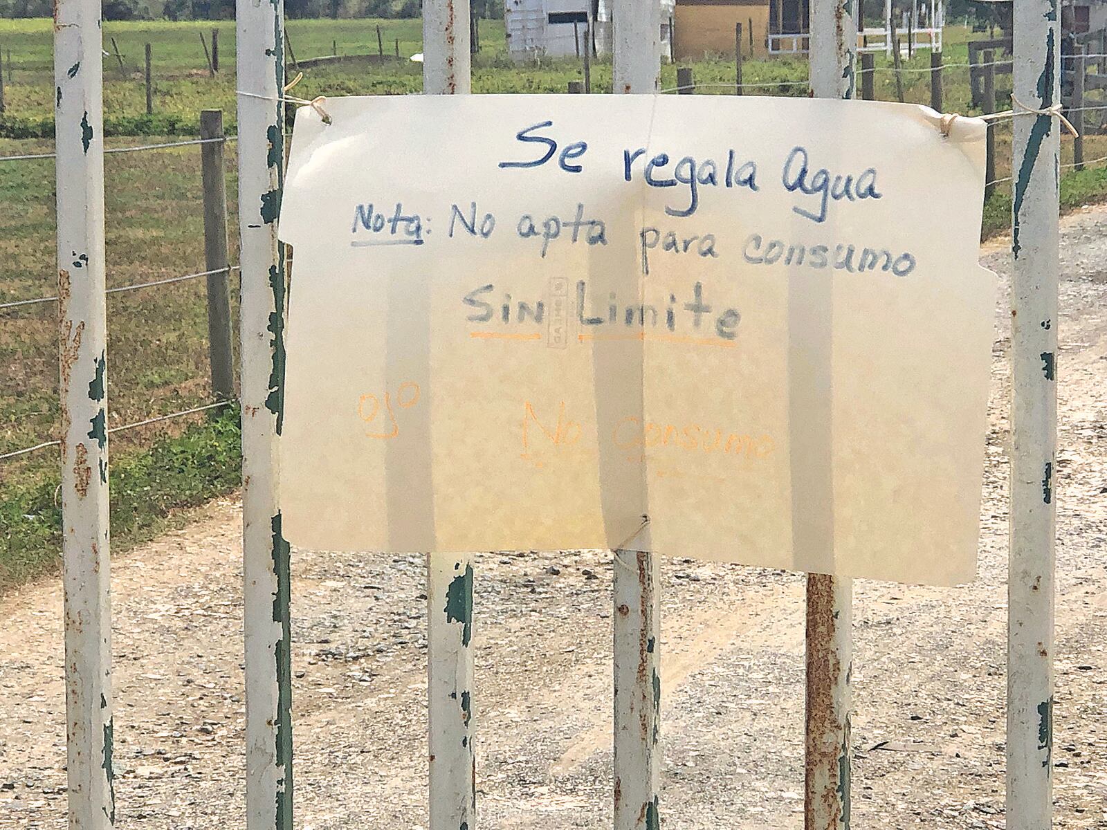 Según FEMA, las botellas tienen fecha de expiración de 2018. Sin embargo, como único aviso en el lugar cuelga un pequeño cartoncito que lee: “Se regala agua. Nota: no apta para consumo. Sin límite”. Periodistas de este diario tienen conocimiento de que más de una persona ha consumido el agua.