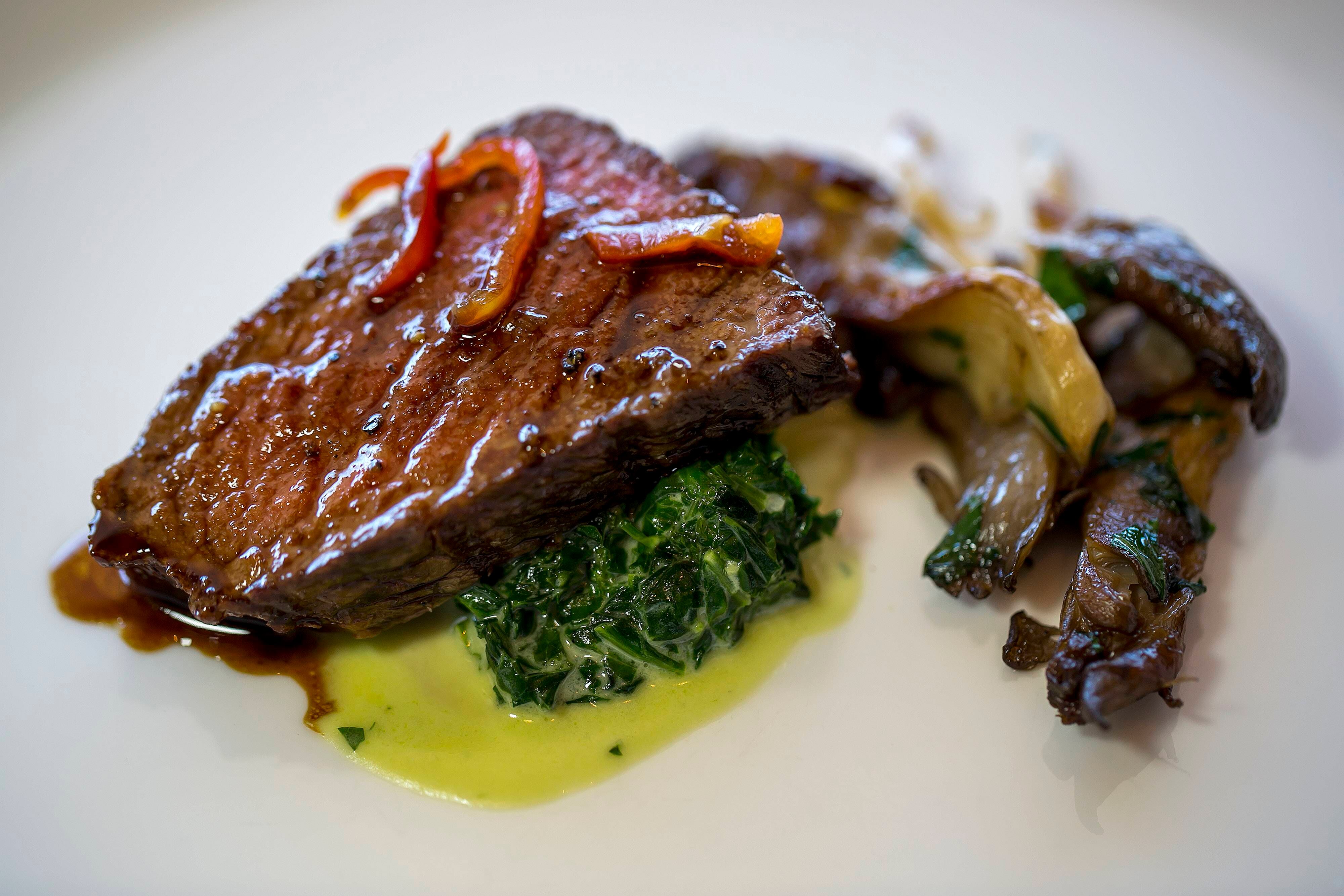 El menú ofrece otras tantas opciones como segundo plato, sopa de espárragos con setas Morel y codorniz, así como la pasta con mejillones, pesto de arúgula y pistacho. Las opciones para el plato fuerte son tan diversas como filete de cartucho local con fideos rostizados, camarones y sepia – y cochinillo servido con habichuelas blancas, tomates orgánicos y parmesano.