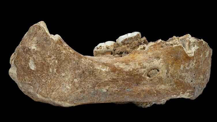 La mitad derecha de la mandíbula con dientes tiene por lo menos 160.000 años de antigüedad, informaron los científicos el miércoles en la revista Nature. No se encontró ningún rastro de ADN, pero los científicos recuperaron fragmentos de proteína que compararon con el ADN siberiano. Eso mostró que el fósil pertenece a los denisovanos.