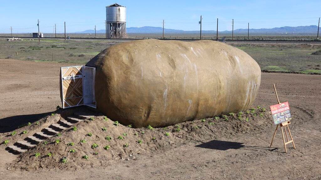 Eso sí, no es una papa mutante, sino que está fabricada de acero, yeso y concreto, estando localizada en un enorme campo de las Montañas Owyhee en Idaho, Estados Unidos.