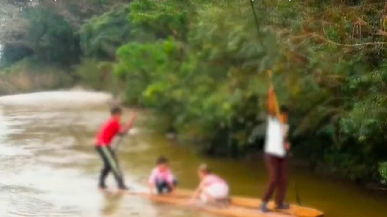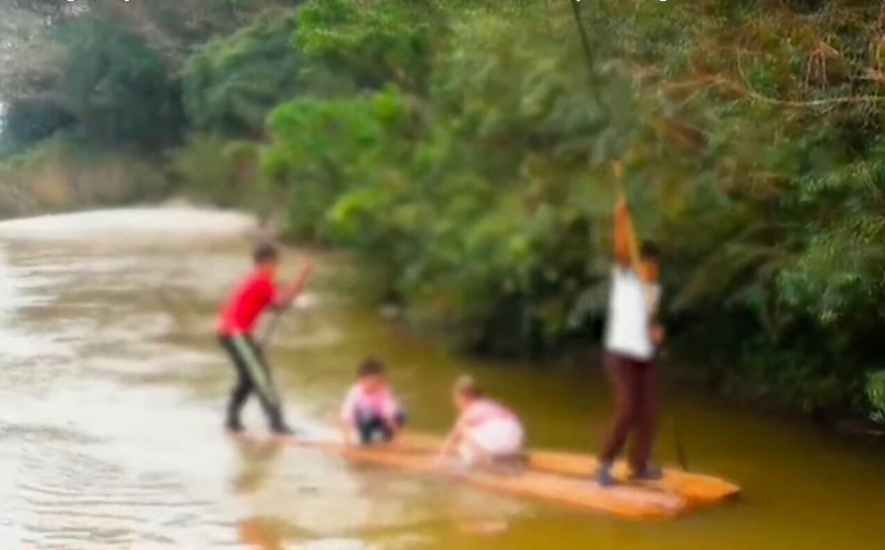 ¡Insólito! Niños deben atravesar en balsa un río con caimanes para llegar al colegio