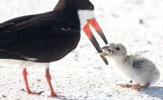 Karen Catbird estaba en una playa de St. Pete cuando no pudo evitar fotografiar a un ave que alimentaba a su polluelo con una colilla de cigarro.