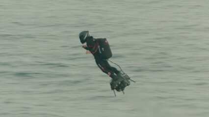 El inventor completó el viaje de 36 kilómetros en 22 minutos, con una parada a mitad de camino para repostar, algo que no pudo hacer durante el último intento ya que las olas le impidieron aterrizar en la estación de reportaje.