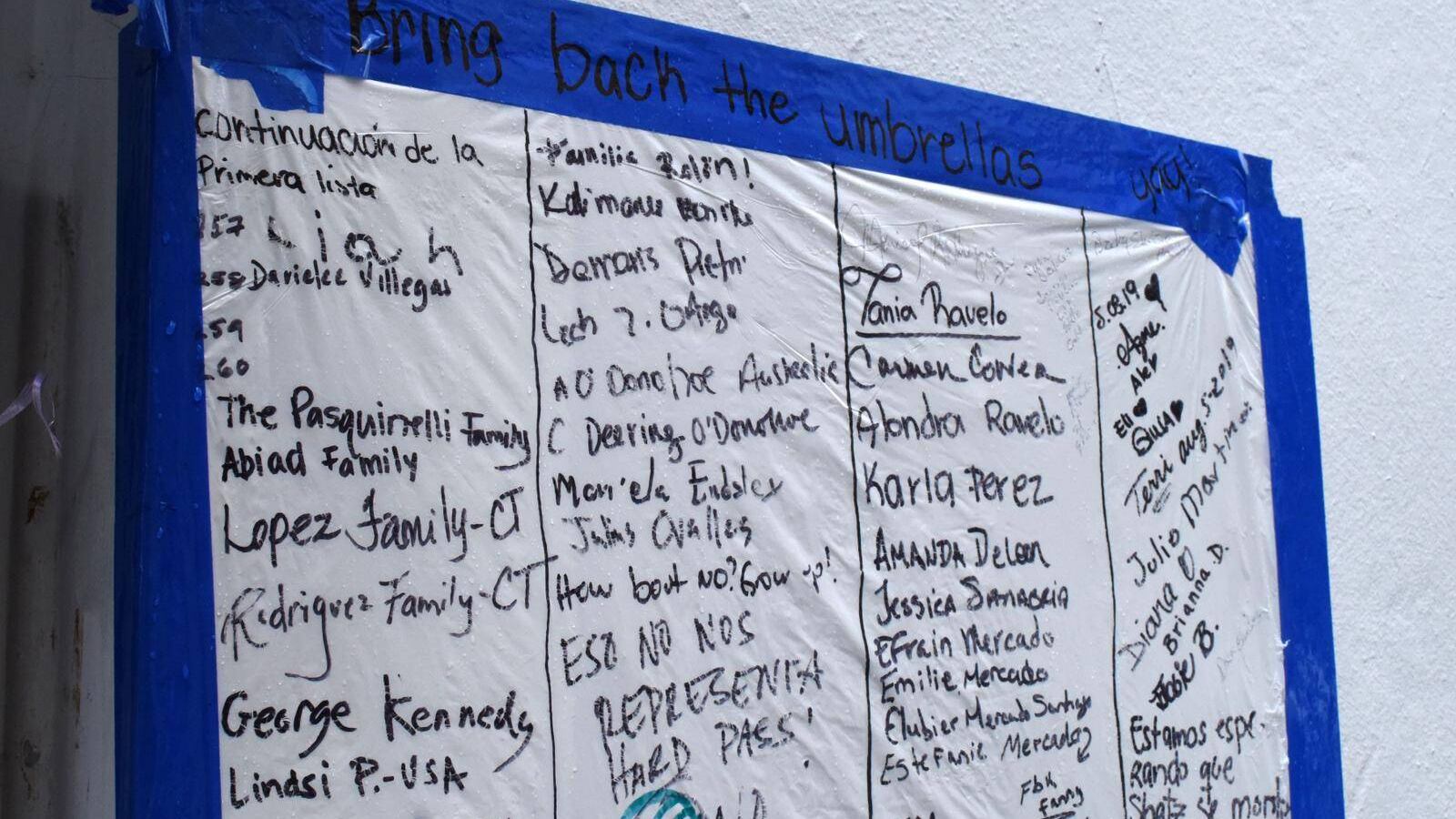 Personas comenzaron a escribir en paredes del Viejo San Juan solicitando que regresen las sombrillas de colores a la Calle Fortaleza luego de que se retiraron durante las protestas ciudadanas que hicieron renunciar a Ricardo Rosselló.