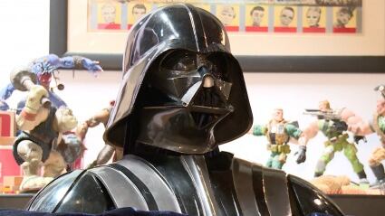 El casco original de Darth Vader, la máscara y el conjunto de armadura de hombro de la película “Star Wars: Episodio V – El Imperio contraataca” se exhibieron el martes en Calabasas, California, antes de que ser subastados.
