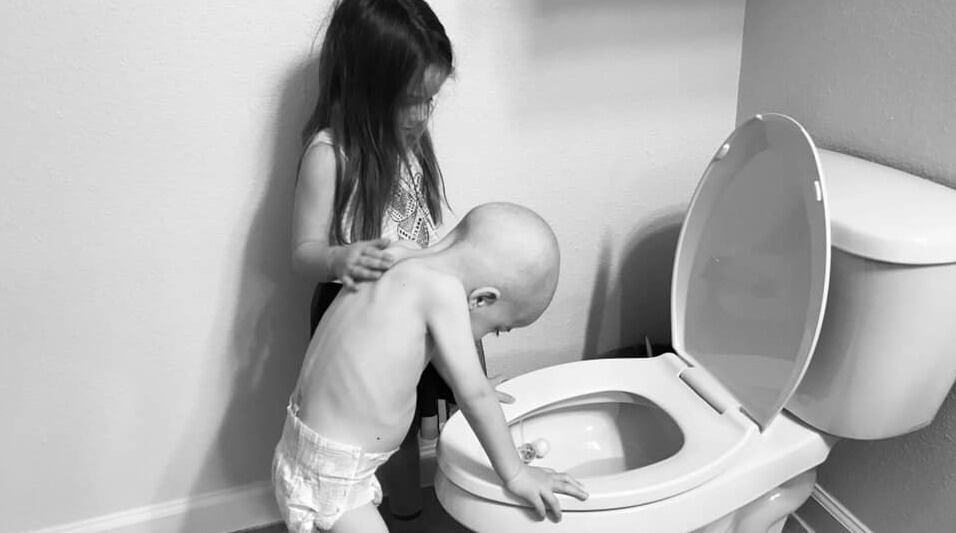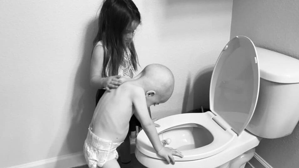 Kaitlin Burge, una mujer de Texas fue quien decidió capturar la foto de su hijo de 4 años enfermo de cáncer. En ella no solo aparece él, sino también su pequeña hermana tratando de consolarlo.