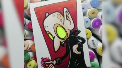 Devin dijo: “Mi técnica de ilustración es una especie de combinación de arte cómico y arte de animación de la vieja escuela. Mis personajes favoritos que he creado son los extraterrestres y los de calabaza, siempre me siento conectado con ellos”. Video: AP.