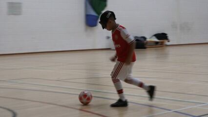 Mikey, un niño de 9 años que perdió la vista hace 2 años, fue grabado este lunes en Londres durante una sesión de entrenamiento del fútbol sala para ciegos.