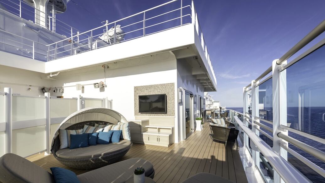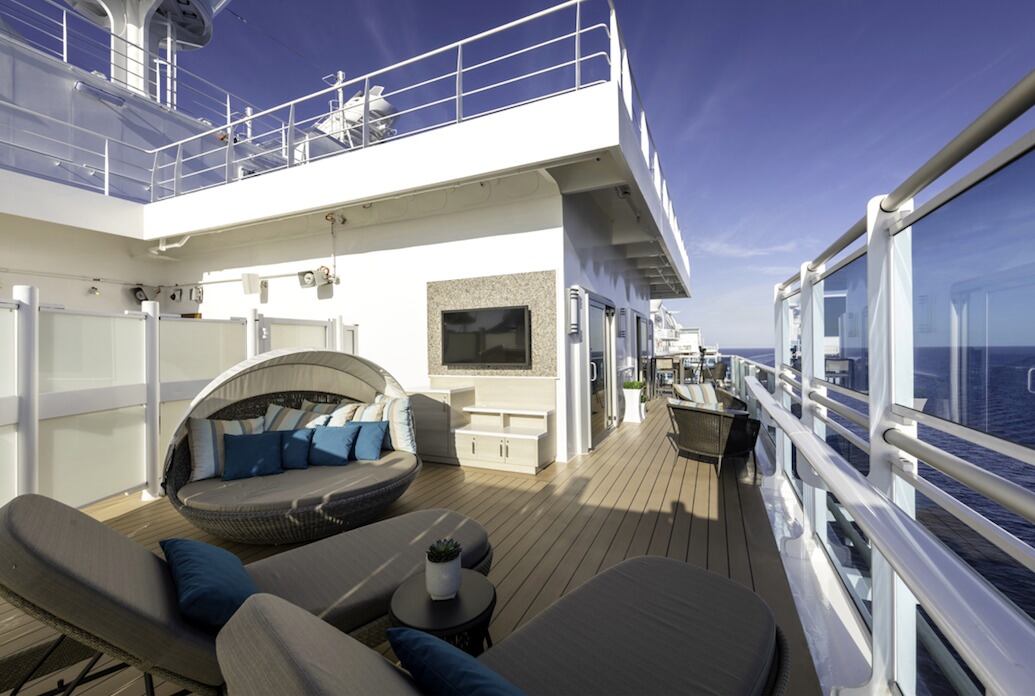 Otro acontecimiento son las lujosas Sky Suites, que gozan de extraordinarias vistas panorámicas con los balcones más grandes jamás vistos en alta mar. Estas están situadas en la parte central de las cubiertas superiores.