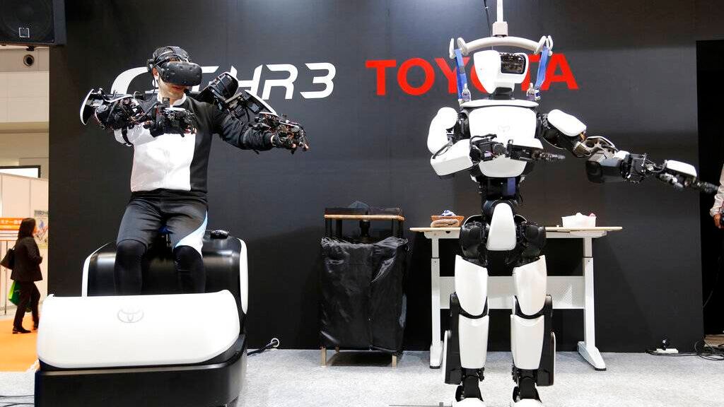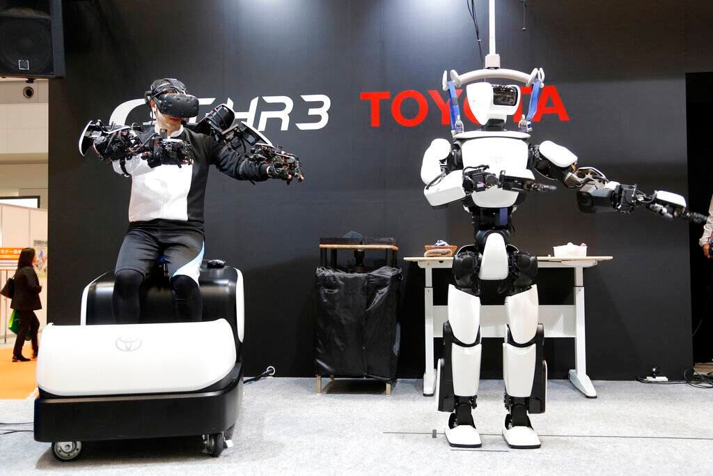 TOKIO – Toyota Motor Corp. dio a conocer una versión mejorada de su robot humanoide T-HR3. El robot, controlado remotamente por una persona con un casco y cables en sus brazos y manos, tiene ahora movimientos más rápidos y fluidos de sus dedos porque el dispositivo controlador es más ligero y fácil de usar.