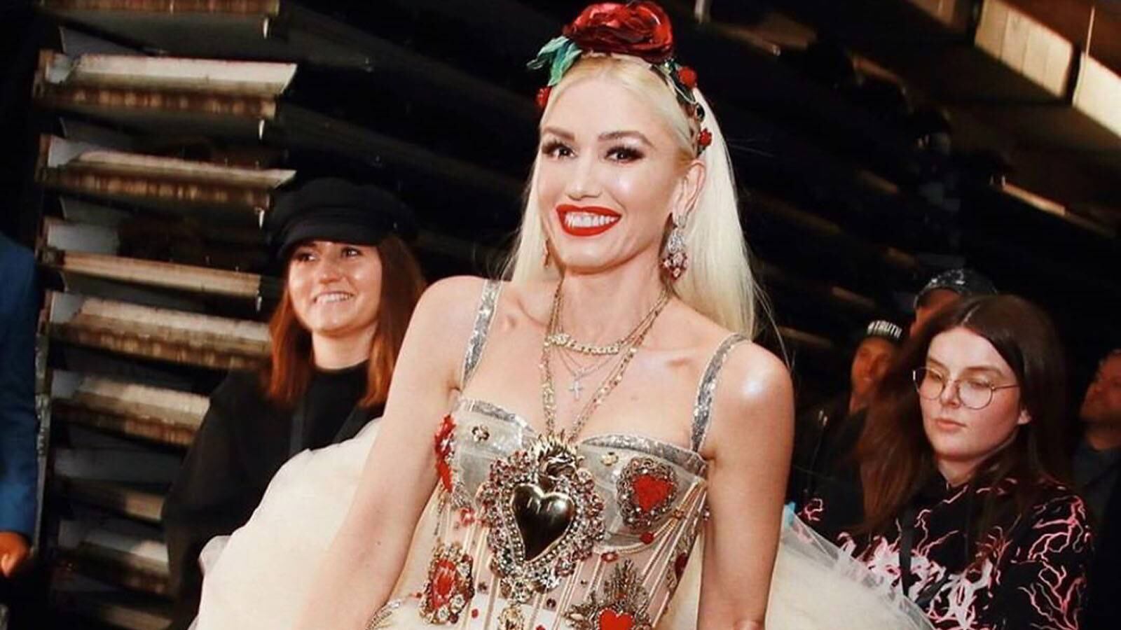 Además, la intérprete de “Don’t Speak” llevó su rubia cabellera suelta pero colocó una diadema que combinaba con los elementos icónicos empleados en el vestido.