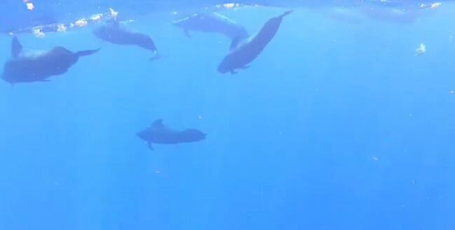 En las imágenes se observan a los mamíferos disfrutando de las cálidas aguas del área sur de Puerto Rico.