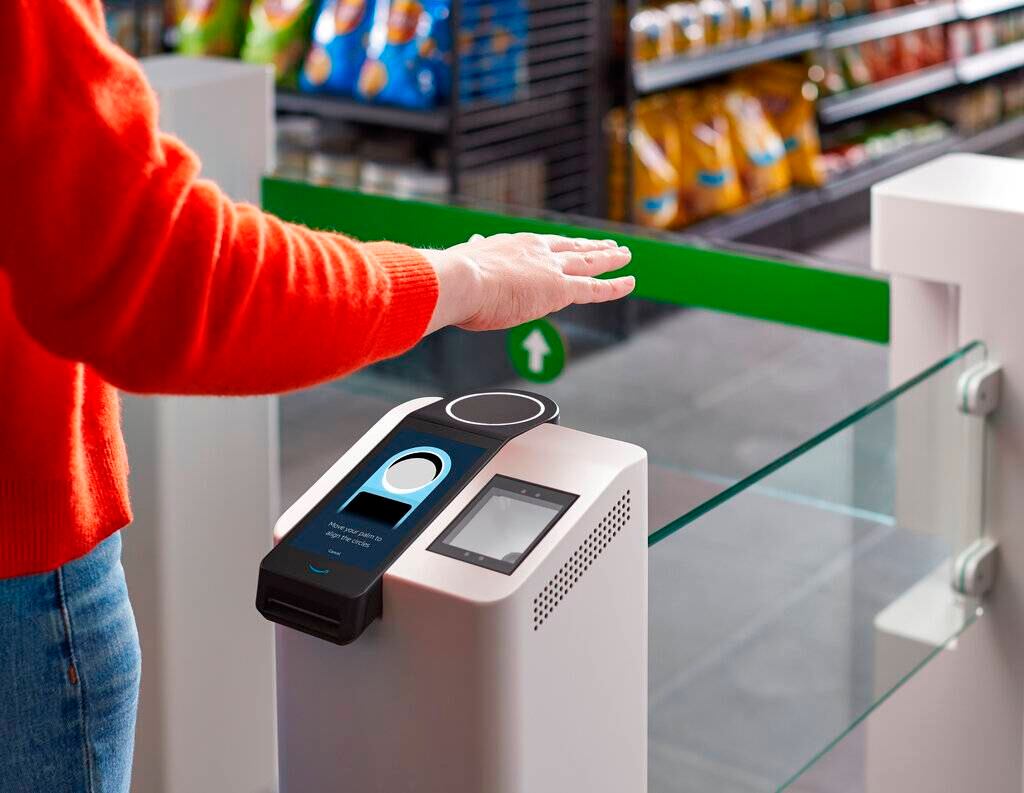 Los clientes en las tiendas cerca del campus de Amazon en Washington pueden mostrar las palmas sobre un dispositivo para entrar y comprar productos.