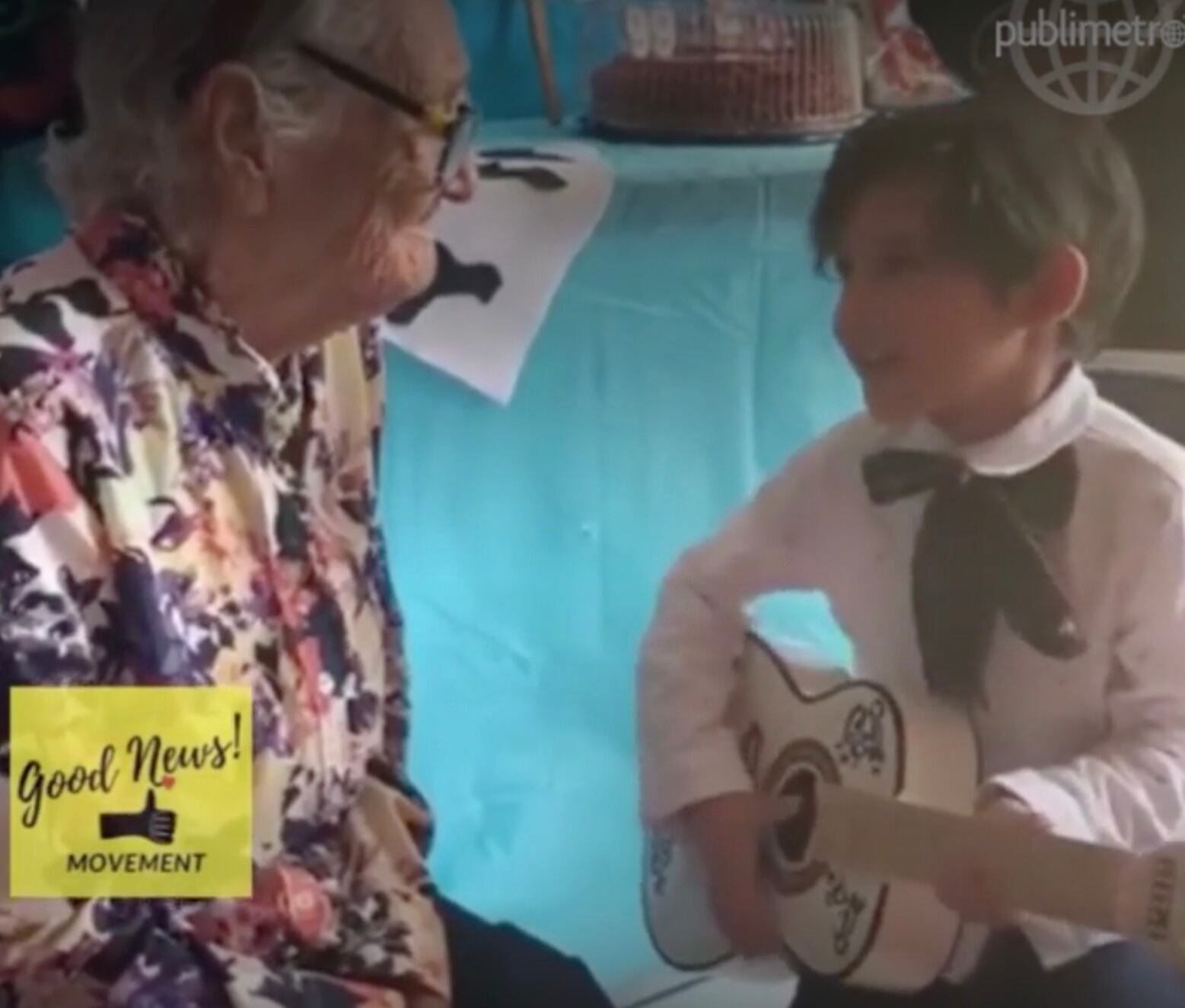 El pequeño canta “Recuérdame”, vestido con camisa blanca y moño de charro, y con una guitarra blanca en sus manos, igual que la que llevaba Miguel -protagonista de la cinta infantil producida por Pixar-, el pequeño se sentó en una silla frente a la mujer de la tercera edad y sin dejar de mirarla, comenzó a entonar las primeras notas.