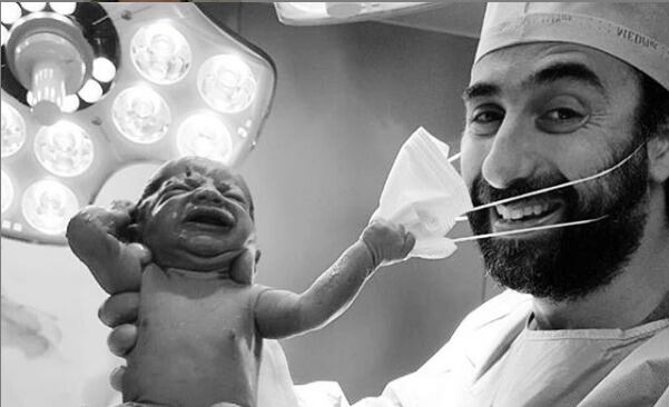 Un bebé recién nacido en Dubai fue retratado en el momento exacto en que trató de arrancar la mascarilla del doctor de su cara, gesto que le dio espacio a Cheain para sonreír en la foto.