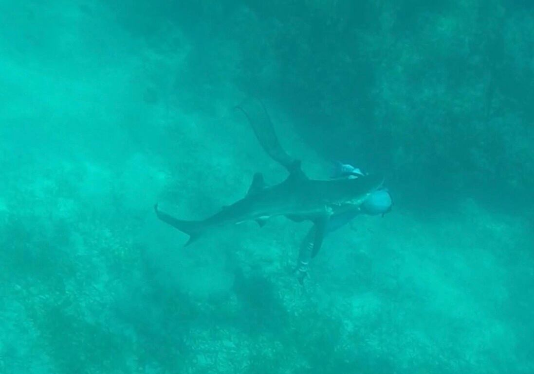 La mujer se encontraba de buceo en la zona con su marido Nick y sus amigos Tyler y Kevin cuando se dieron cuenta de que no estaban solos.
