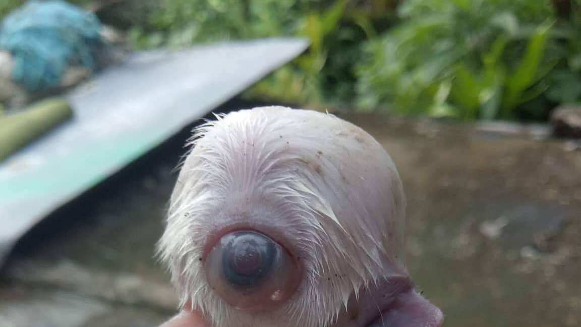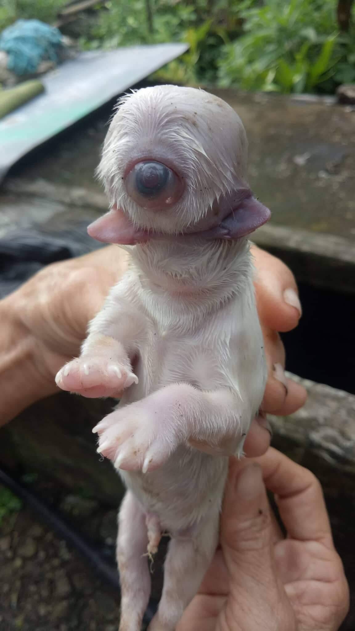 Sin nariz, con dos lenguas y con un solo ojo. Con esas características, el pequeño cachorro de color blanco no podía respirar de forma correcta y mucho menos alimentarse de su madre.
