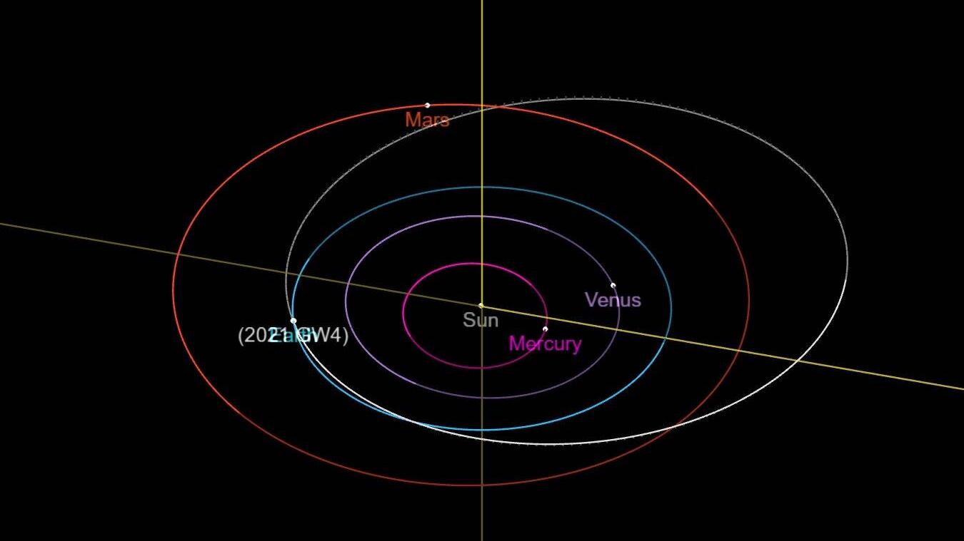 Cálculos de la NASA indican que la roca espacial se acercará a solo 12,313 millas de la superficie de la Tierra, lo que equivale a solo 5 por ciento de la distancia Tierra-Luna. El asteroide 2021 GW4 se desplaza a una velocidad de 18,706 millas por hora (30,104 km/h).