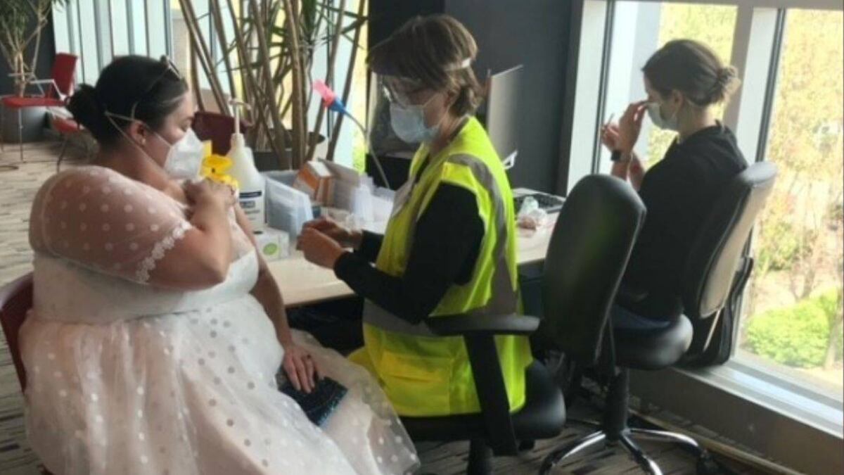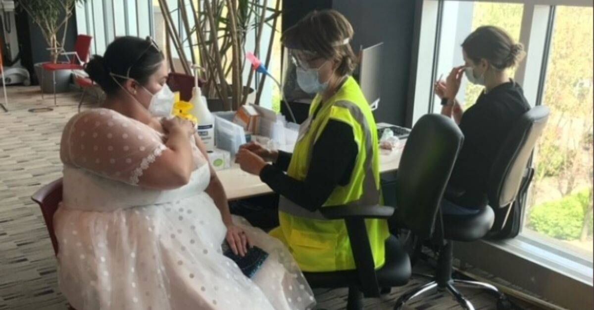 Y entre los miles de casos de personas vacunadas, se viralizó uno muy curioso. El de una mujer que asistió con su vestido de boda el día en el que la vacunaron.