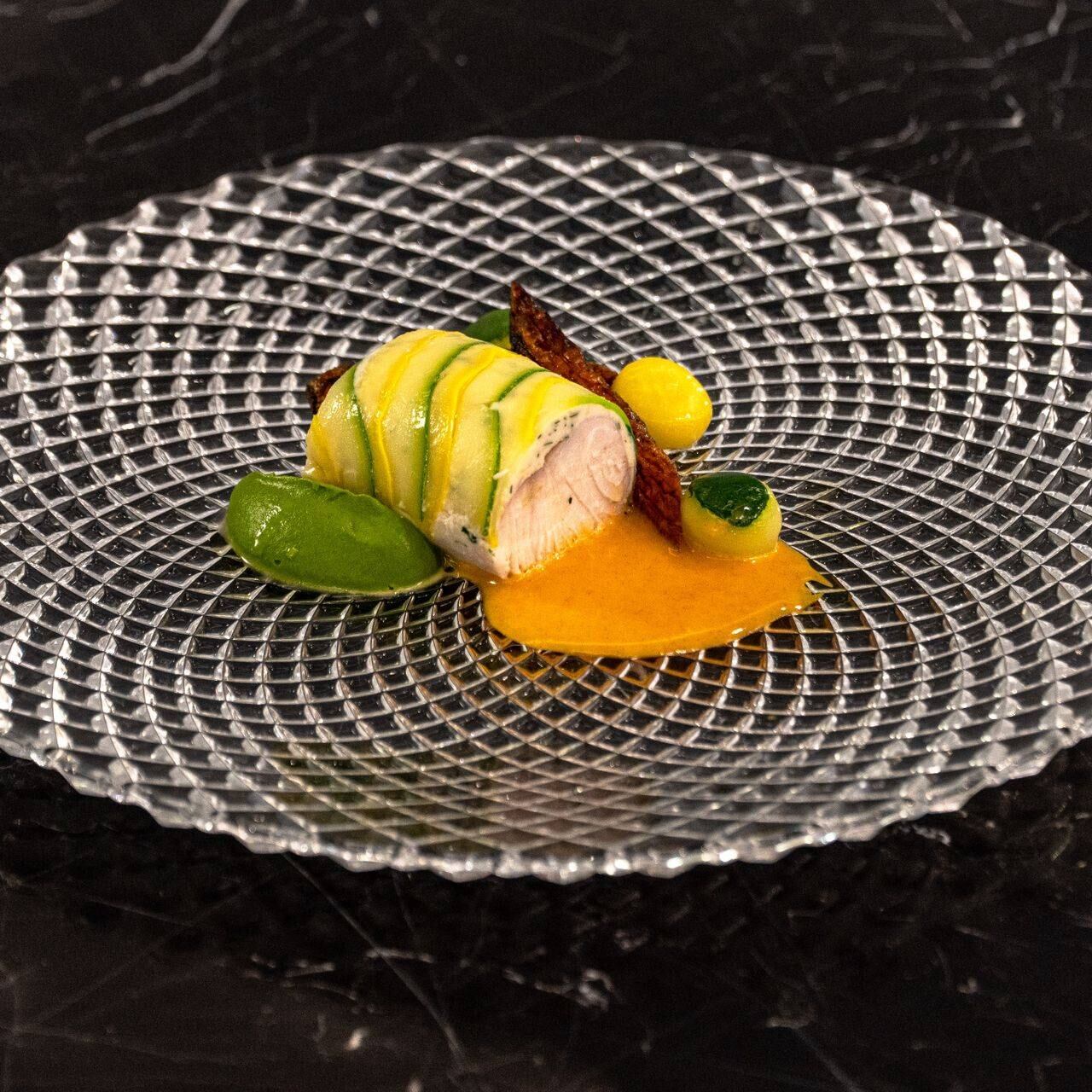 La experiencia comienza con deliciosos canapés creados diariamente por el equipo culinario procedente de Nueva York. Para el segundo curso, el invitado podrá seleccionar entre una ensalada de berros y cítricos con vinagreta de nueces tostadas, ensalada de tomates y sandía, o berenjena crujiente con alioli y orégano brujo.