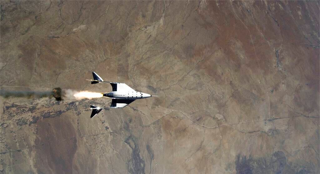 A una altura enorme sobre el desierto y con un cielo despejado, el VSS Unity encendió su cohete para propulsarse con dos pilotos hacia el espacio. El sitio NASASpaceFlight.com transmitió en vivo cuando la nave aceleraba hacia arriba y confirmó después su aterrizaje mediante radar.