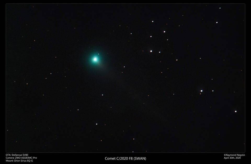 La imagen de este artículo corresponde al Cometa Swan, detectada a través de un telescopio por Raymond Negrón, de la SAC.